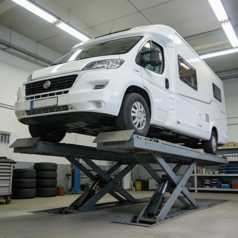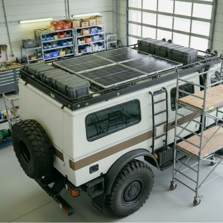 KI-generiert: Expeditionsmobil in der Werkstatt